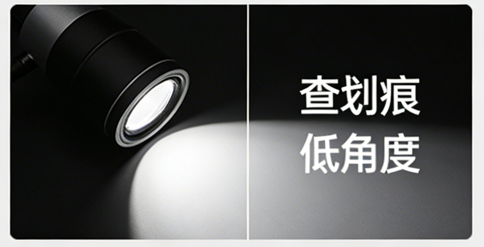 点光源加柱面镜:可形成一条细长的光带,定向照亮特定区域的微细划痕。