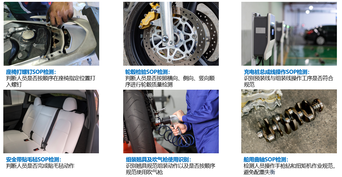 制造业是SOP合规检测最广泛的应用领域。在装配工序中,系统自动检测零部件安装顺序是否正确,验证装配工具使用是否符合规范,监控关键扭矩参数的设置合规性。在危险作业场景中,实时监测个人防护装备佩戴情况,预警违规进入危险区域行为,检测特殊作业许可执行情况。