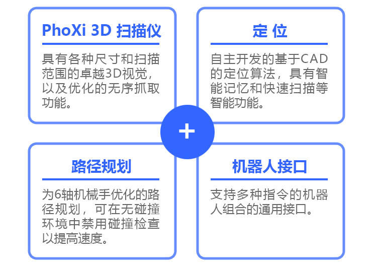Bin Picking studio是由我们的PhoXi系列所代表的强大3D视觉硬件和用于设置抓取的智能软件组合而成。